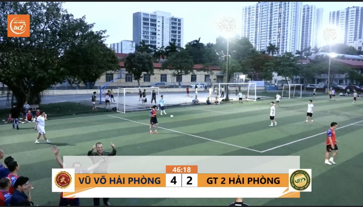 Chiều tối ngày 25/05/2024, tại sân bóng đá Trường Đại học Hàng Hải Việt Nam đã diễn ra trận đấu giao lưu bóng đá giữa Hội Doanh nhân Vũ (Võ) TP. Hải Phòng (DNVVHP) và GT2 - Cộng đồng doanh nghiệp Giá tốt Việt Nam (GT2)
