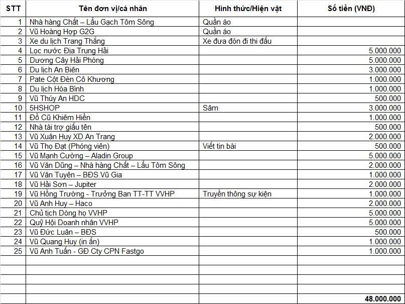 Trong hành trình chuẩn bị cho Giải bóng đá Dòng họ Vũ – Võ Việt Nam lần thứ XI, FC Vũ – Võ Hải Phòng đã nhận được sự quan tâm, ủng hộ nhiệt tình từ các doanh nhân, đơn vị và bà con trong dòng họ.