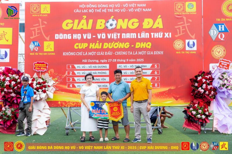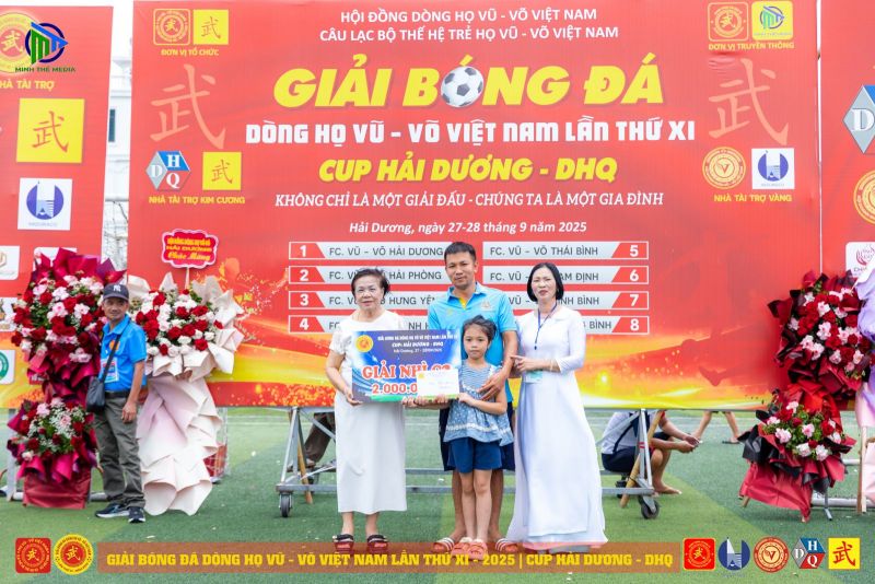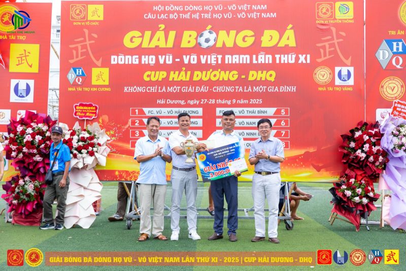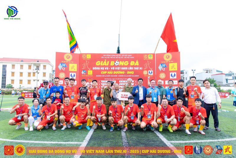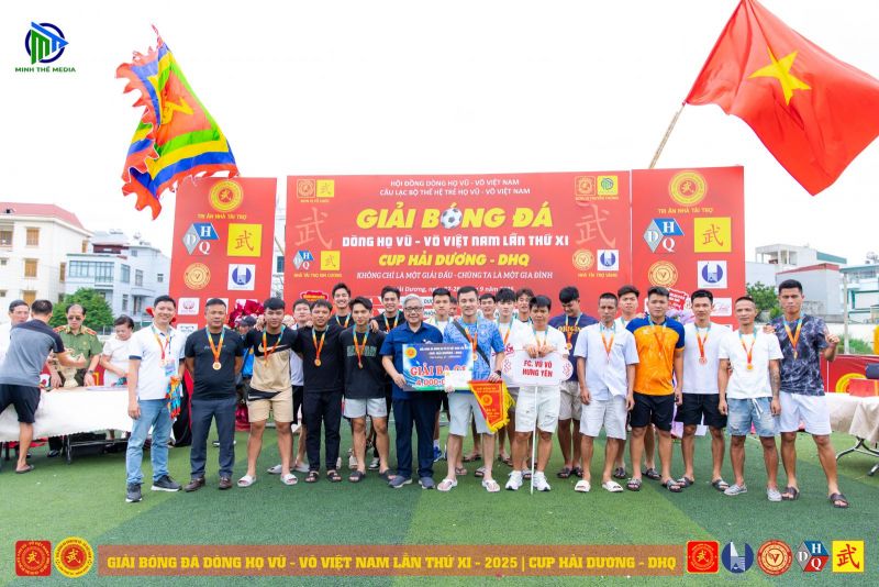 (VVHP) - Sau 2 ngày thi đấu, Giải Bóng đá Dòng họ Vũ - Võ Việt Nam lần thứ XI - năm 2025 đã thành công rực rỡ. Đội chủ nhà FC Vũ - Võ Hải Dương đã bảo vệ thành công chức Vô địch; đội Hải Phòng giành ngôi Á quân, đội Hưng Yên đạt giải Ba, đội Quảng Bình đạt giải Tư. Tiếp sau đó, đội Ninh Bình giành giải Nhất C2, cùng các giải 2, 3, 4 của C2 lần lượt thuộc về các đội: Thanh Hóa, Thái Bình, Nam Định.
