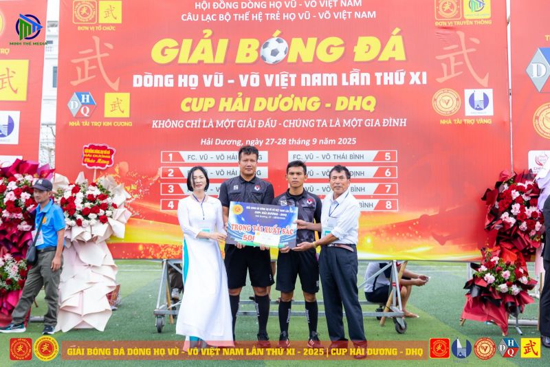 Trao thưởng cho Tổ trọng tài điều khiển trận Chung kết C1 Giải Bóng đá Dòng họ Vũ - Võ Việt Nam lần thứ XI - năm 2025