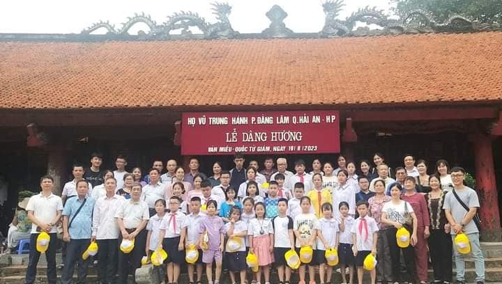 Tiếp theo đoàn đến Văn Miếu Quốc Tử Giám làm lễ dâng hương, lễ báo công lên các vị Tiên Thánh, Tiên Hiền và trao quà tuyên dương các cháu đạt danh hiệu học sinh giỏi năm học 2022-2023. Đây là lần thứ hai dòng họ Vũ Trung Hành tổ chức tuyên dương các cháu với hình thức và nghi lễ trang trọng đặc biệt này.