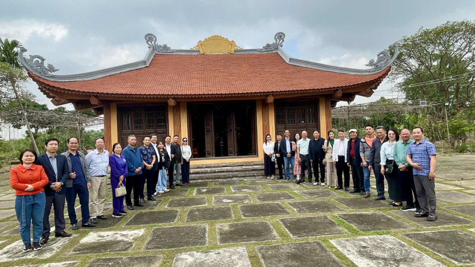 Ảnh: Đoàn Hội Doanh nhân Vũ – Võ Hải Phòng chụp ảnh lưu niệm tại Miếu thờ Thần Tổ Vũ Hồn.