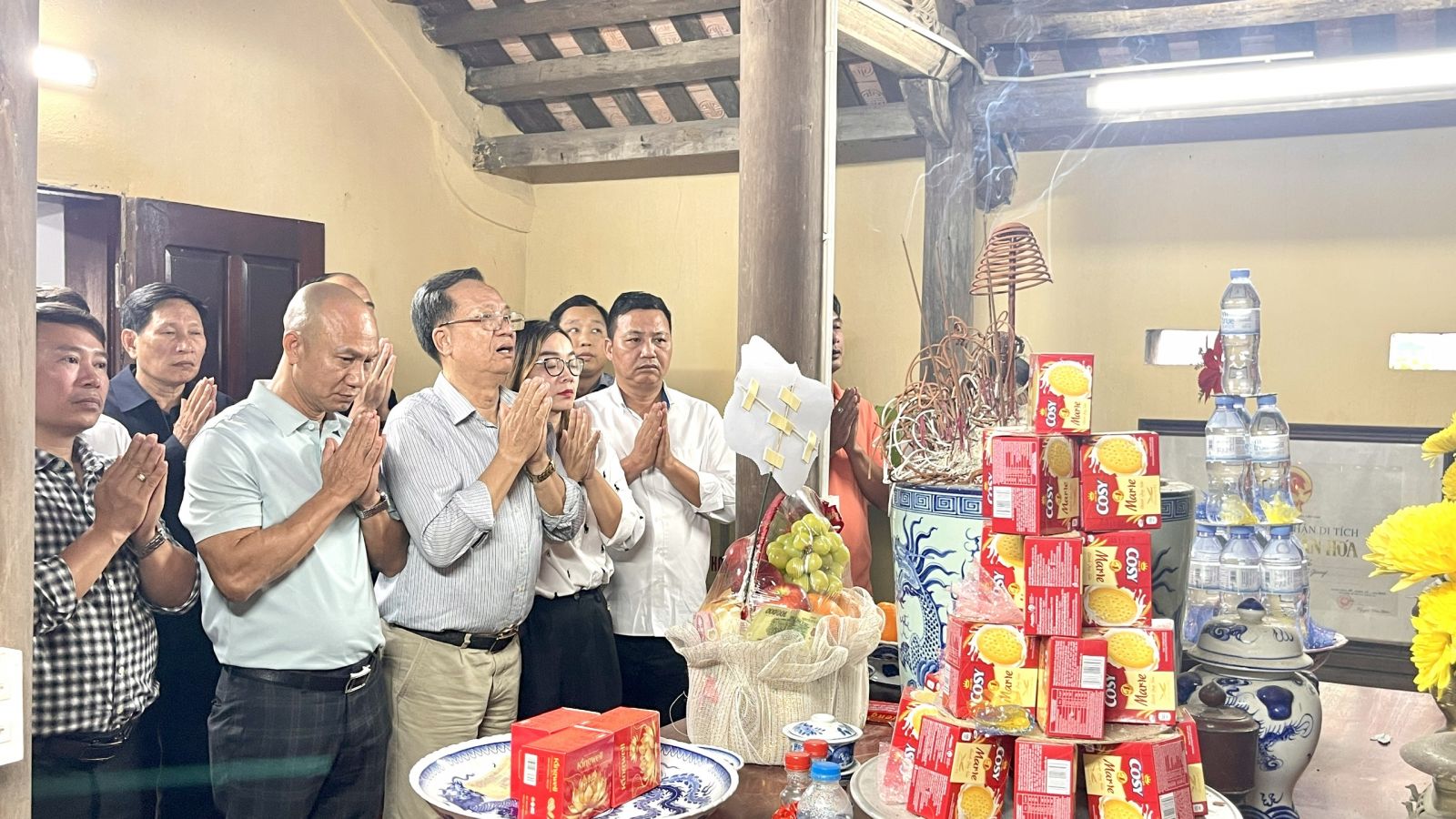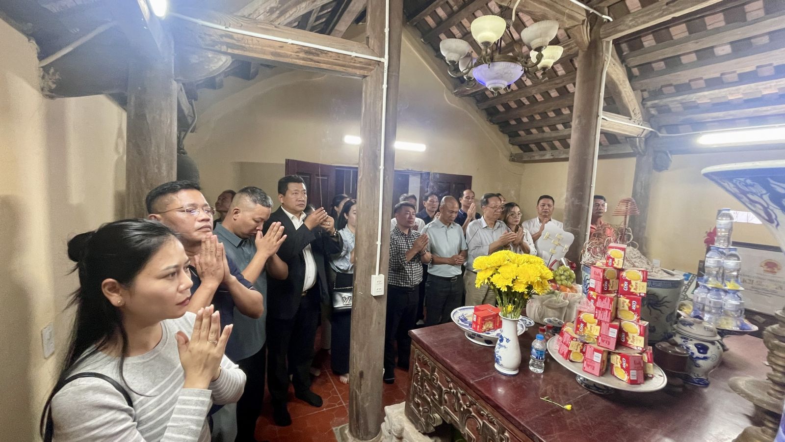 Ảnh: Đoàn Hội Doanh nhân Vũ – Võ Hải Phòng Dâng dương tại Đình làng Mạc Xá (A2).