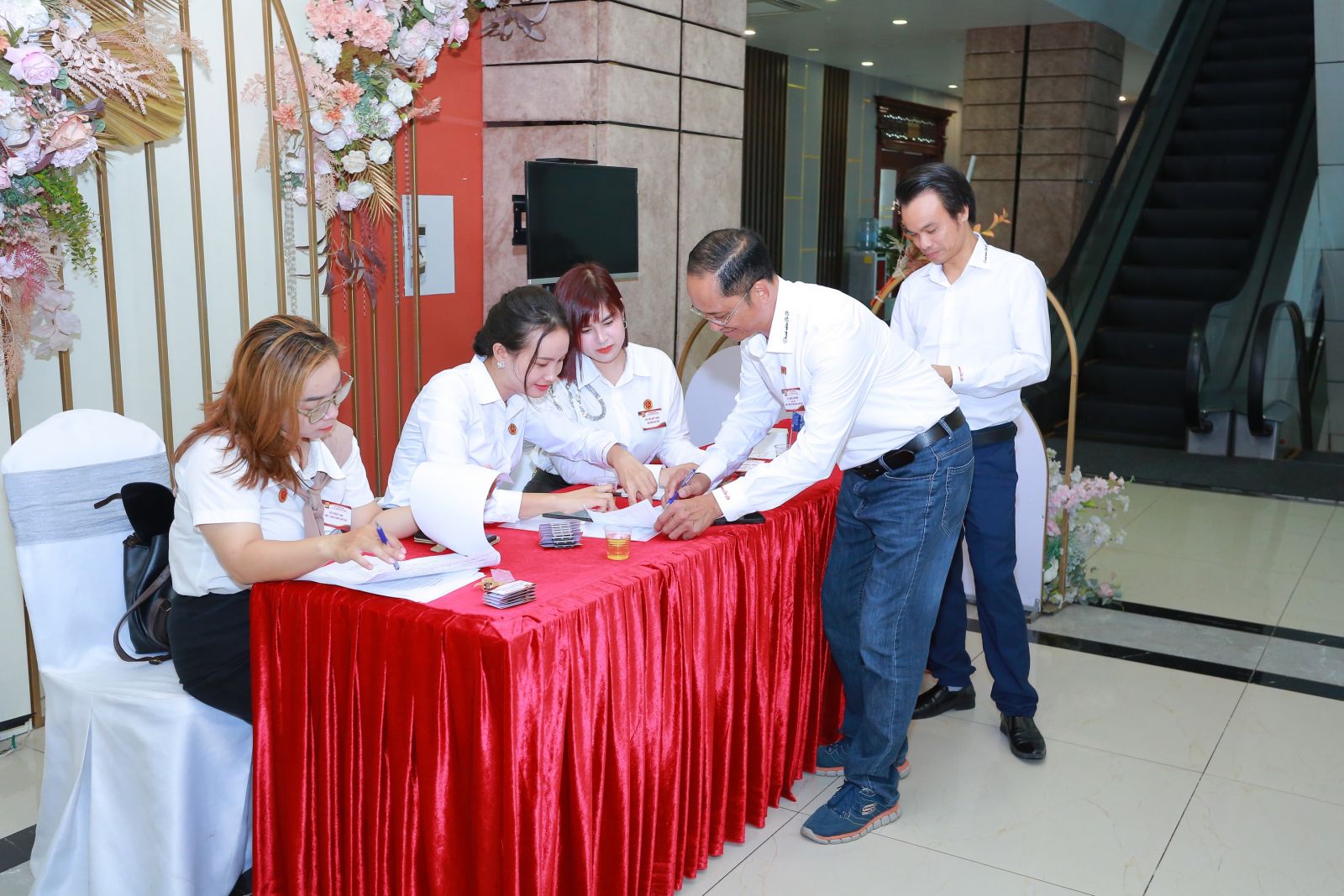 Ban thư ký Hội đón tiếp các Hội viên và khách mời