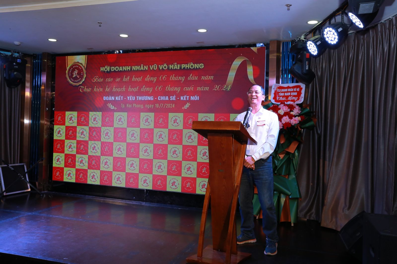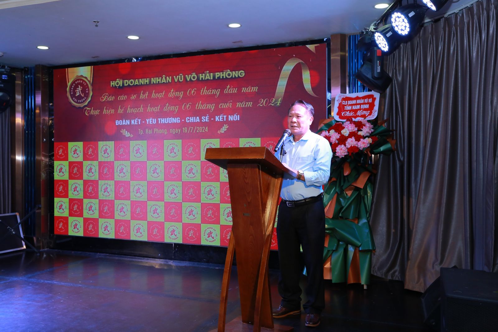 Phát biểu tại cuộc họp, Ông Vũ Nguyên Thái - Chủ tịch Hội đồng dòng họ Vũ (Võ) TP. Hải Phòng đã vui mừng và nhiệt liệt biểu dương Ban chủ tịch Hội và các hội viên Hội DNVVHP trong thời gian qua đã có nhiều hoạt động đáng ghi nhận, thực hiện tốt các định hướng của Hội đồng dòng họ giao phó, đặc biệt là việc Ban chủ tịch Hội nhận trách nhiệm kêu gọi công đức xây dựng nhà bia tại khuôn viên Nhà thờ Tổ Đền Nam Hải (Nhà từ đường dòng họ VVHP) với trị giá trên 300 tr đồng.