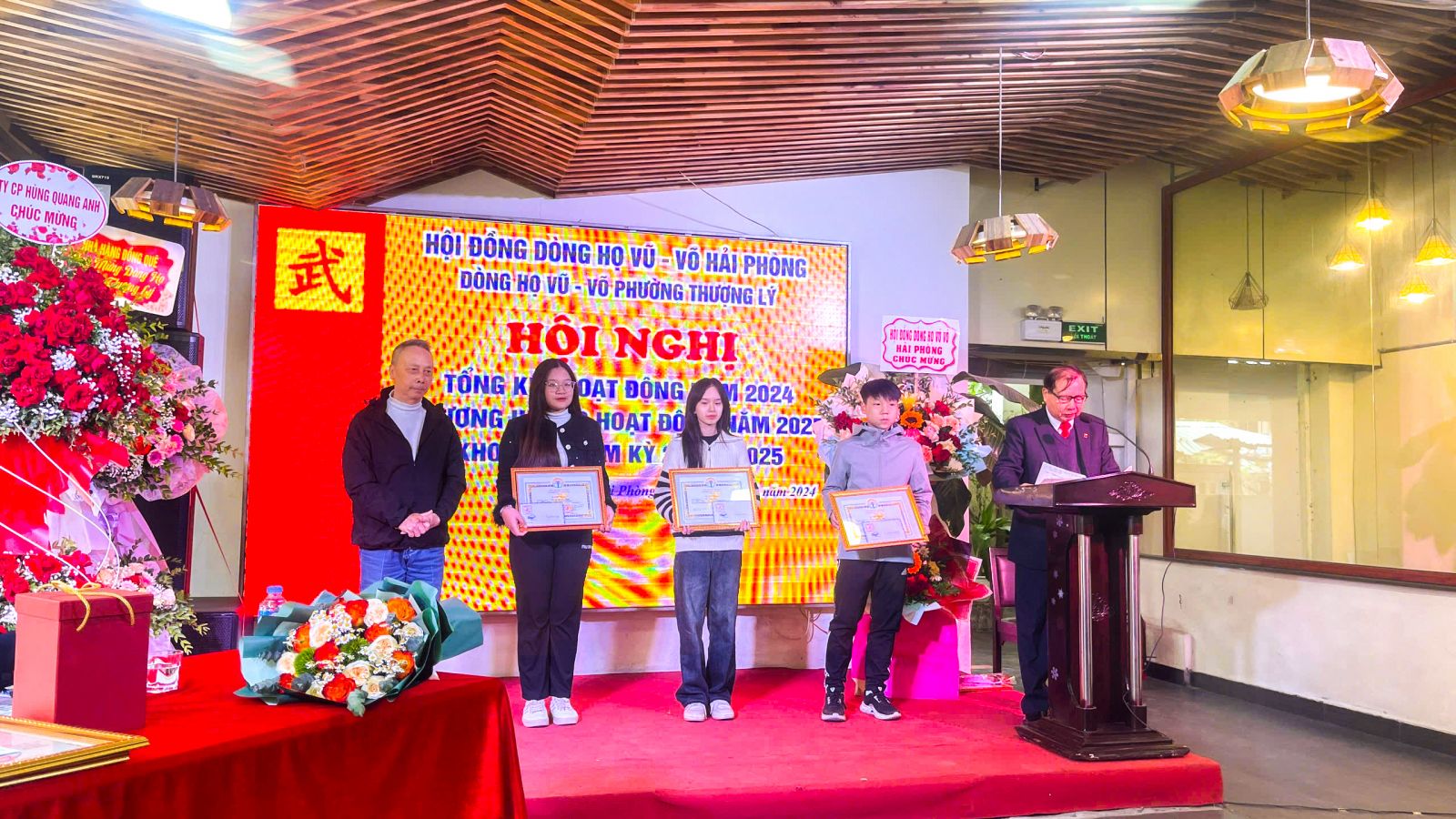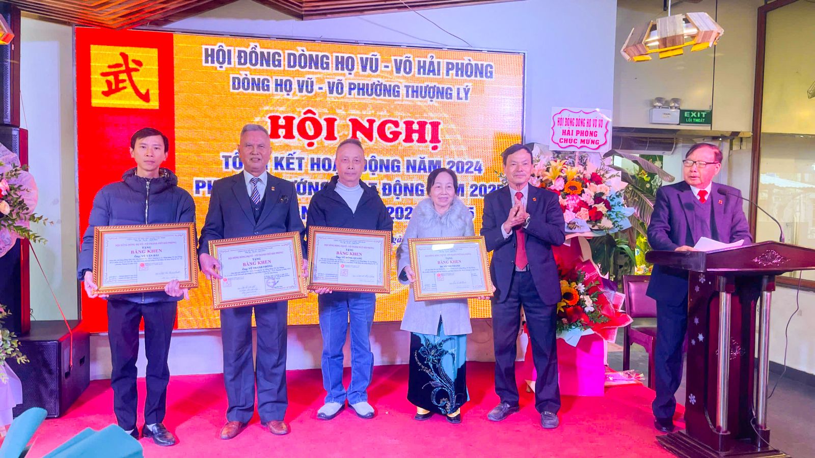 Nhân dịp này Hội đồng dòng họ Vũ(Võ) TP. Hải Phòng trao tặng bằng khen cho một số cá nhân thuộc Hội đồng dòng họ Vũ (Võ) phường Thượng Lý có nhiều thành tích xuất sắc trong hoạt động, vận động và xây dựng Hội đồng dòng họ Vũ (Võ) phường Thượng Lý năm 2024, góp phần làm vẻ vang Dòng họ Vũ (Võ) TP. Hải Phòng. Trong đó có: Ông Vũ Hồng Quang; Ông Vũ Thành Phòng; Bà Vũ Thị Thanh; Ông Vũ Việt Dũng; Ông Vũ Văn Hải
