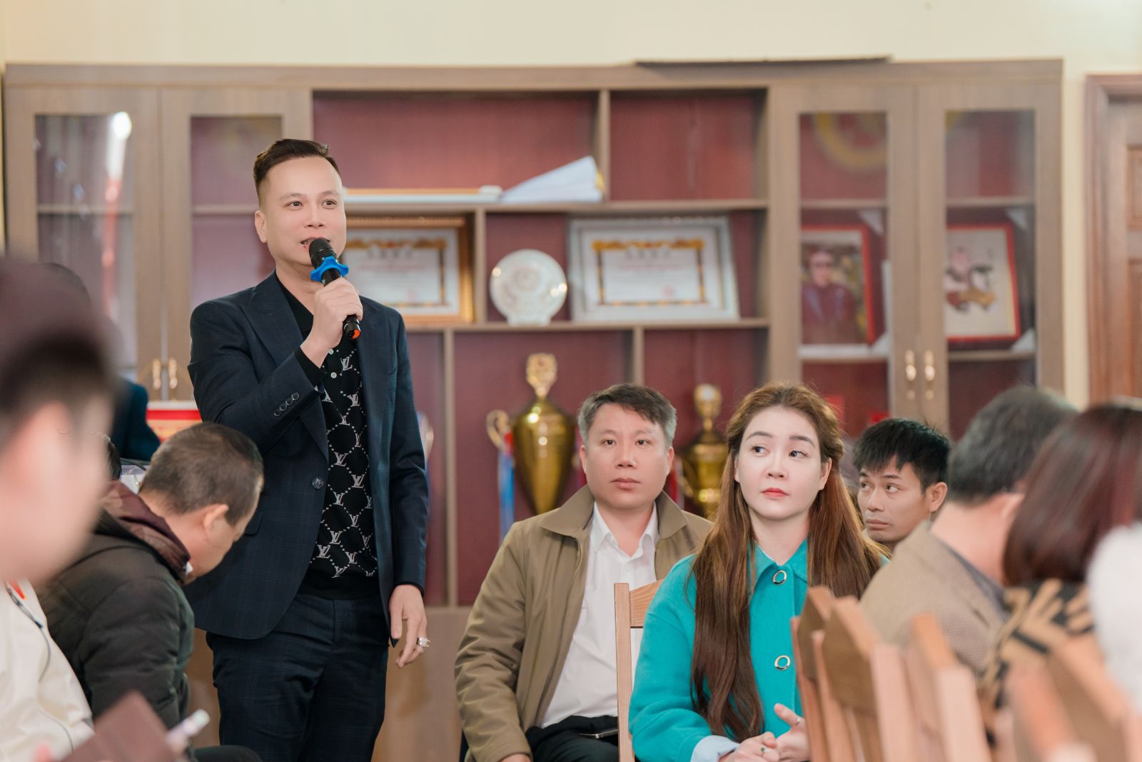 Ông Vũ Mạnh Cường - Aladin phát biểu, nhấn mạnh việc cùng nhau tạo giá trị kinh tế, thu hút hội viên có tâm – có tầm và xây dựng quy chế hoạt động chuyên nghiệp cho Hội.