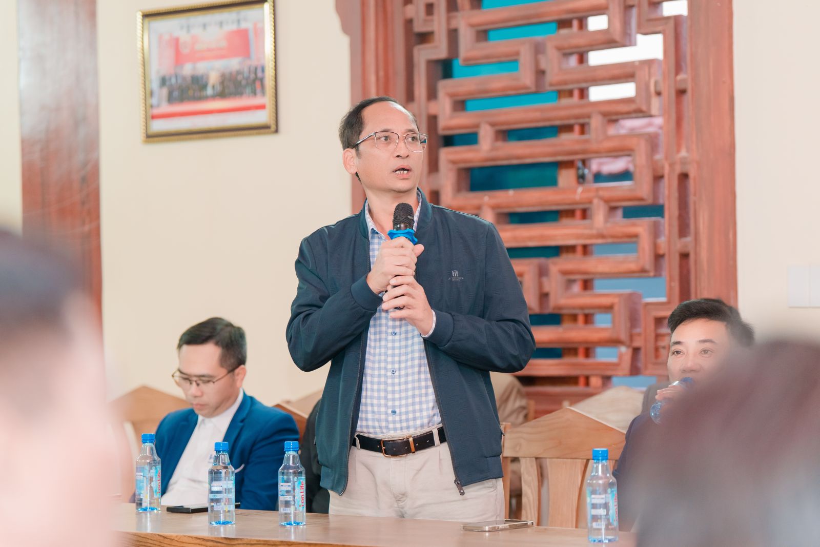 Ông Vũ Đức Huỳnh phát biểu, đề nghị làm rõ vai trò Ban Kinh tế trong kết nối cơ hội kinh doanh và cơ chế sử dụng quỹ Hội.