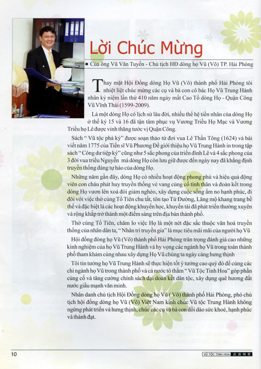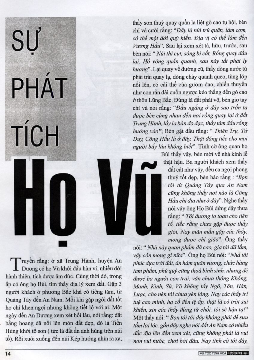 Vũ Tộc Phả Ký dòng Họ Vũ Trung Hành Trích từ cuốn "VŨ TỘC TRUNG HÀNH TRƯỜNG TỒN CÙNG ĐẤT NƯỚC"